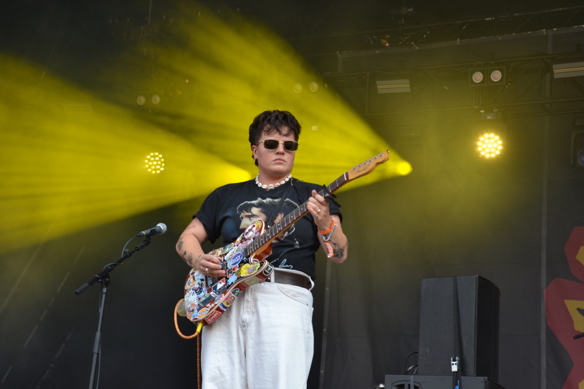 21st September 2025 Girlband! Photo taken at beautiful days 2025 of the front person in riot grrl band “girl band!”